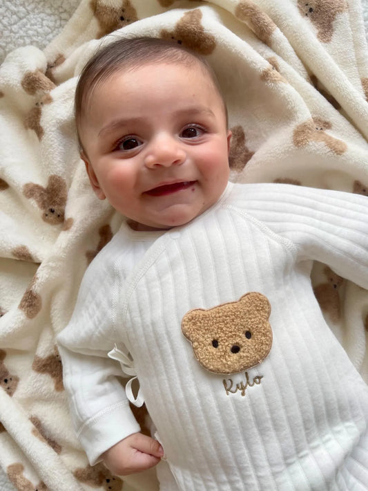 The Happy Bear Boucle Wrap Baby Grow Romper