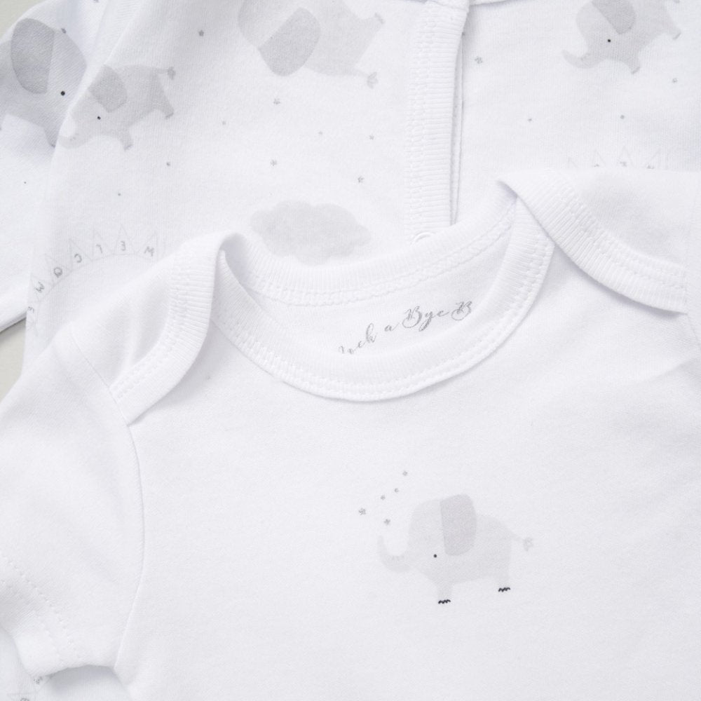 Gender Neutral set includes a sleepsuit with matching hat, bib and mittens, and a bodysuit.