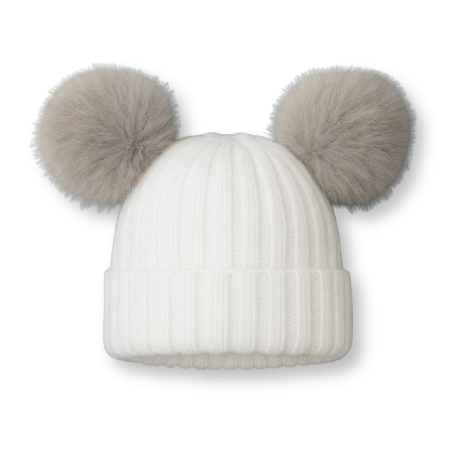 • Ribbed Hat w/Faux Fur Pom Poms & Turnover