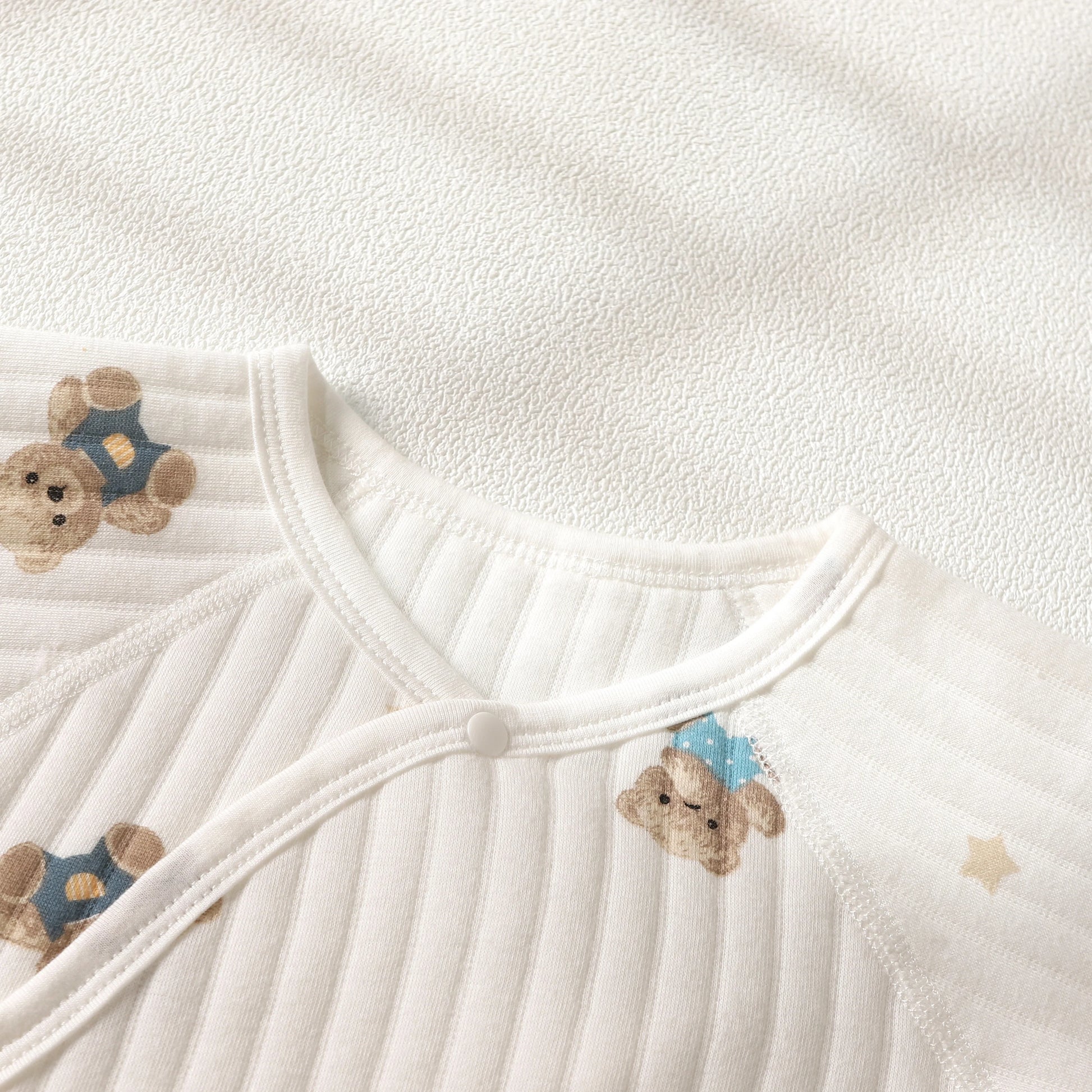 Our Charming Bear Boucle Wrap Baby Grow Romper is not only cute but also a testament to craftsmanship. The plush boucle fabric is incredibly soft and gentle against your baby's delicate skin, while the adorable bear motif adds a touch of whimsy and charm. It's the perfect combination of comfort and style for your little one.