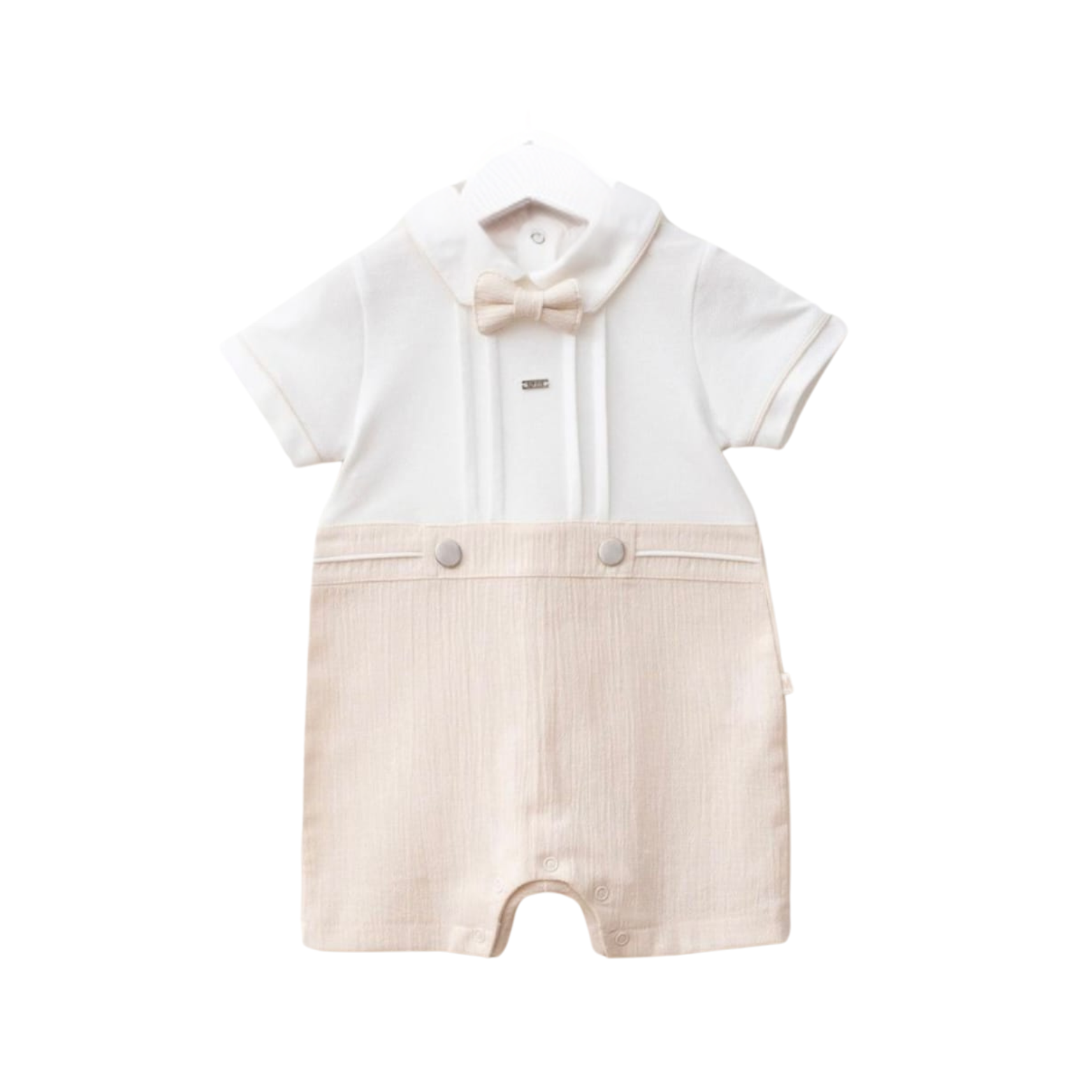 Beige bow romper perfect for special occasions and photoshoots within spring and summer season.